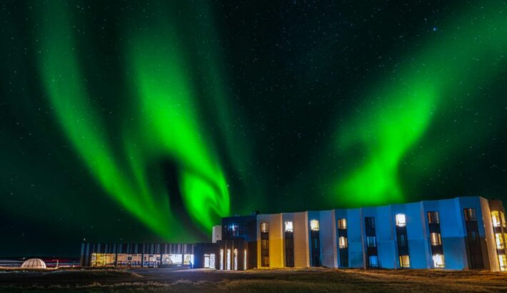 Landhotel is the best hotel in South Iceland to witness the Northern Lights during the season September to end of April. The dark starry skies during this time allows for a perfect view when the Northern Lights are flowing over the hotel.