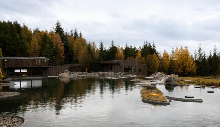 laugaras lagoon Soak in a breathtaking natural setting Soak in a breathtaking natural setting. Tucked into the natural surroundings and overlooking the Hvítá River, the elegant two-storey lagoon immerses guests in soothing geothermal waters, seamlessly harmonizing with the surrounding landscape. After bathing in the lagoon guests can have a memorable meal at Ylja Restaurant, their