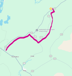 Landhótelið er staðsett við þjóðveg númer 26, aðeins 10 mínútna akstur frá þjóðvegi númer 1. Þegar ekið er frá Selfossi eftir þjóðvegi númer 1 kemur að hringtorginu um það bil 5 km fyrir Hellu. Á þessum hringtorgum tekurðu þriðju útgönguleiðina inn á þjóðveg númer 26.
